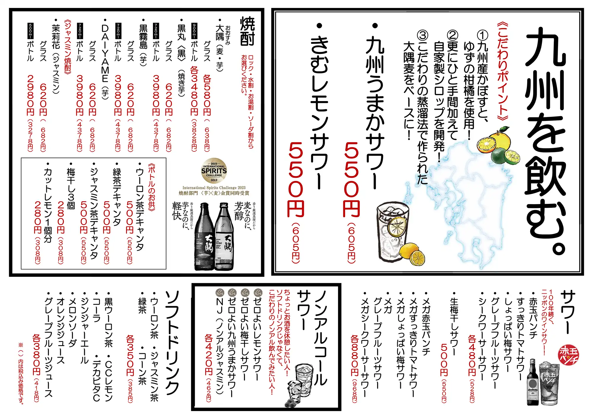 お一人様料理2品以上のご利用が対象・別途でお通し550円頂戴します。当日OK!
